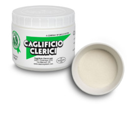 Clerici powder rennet is the highest quality rennet ever, a fast rennet for expert cheesemakers but which guarantees a distinguishable product and therefore extremely sought after, especially in POD, PGI, AOC, AOP. Powder rennet is obtained by precipitation from the liquid rennet and subsequent drying on sodium chloride.